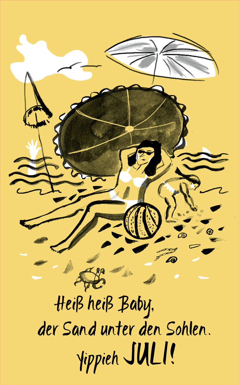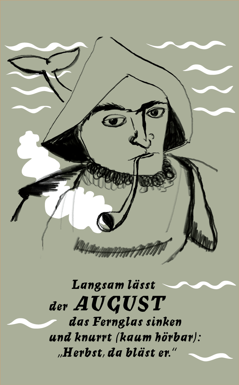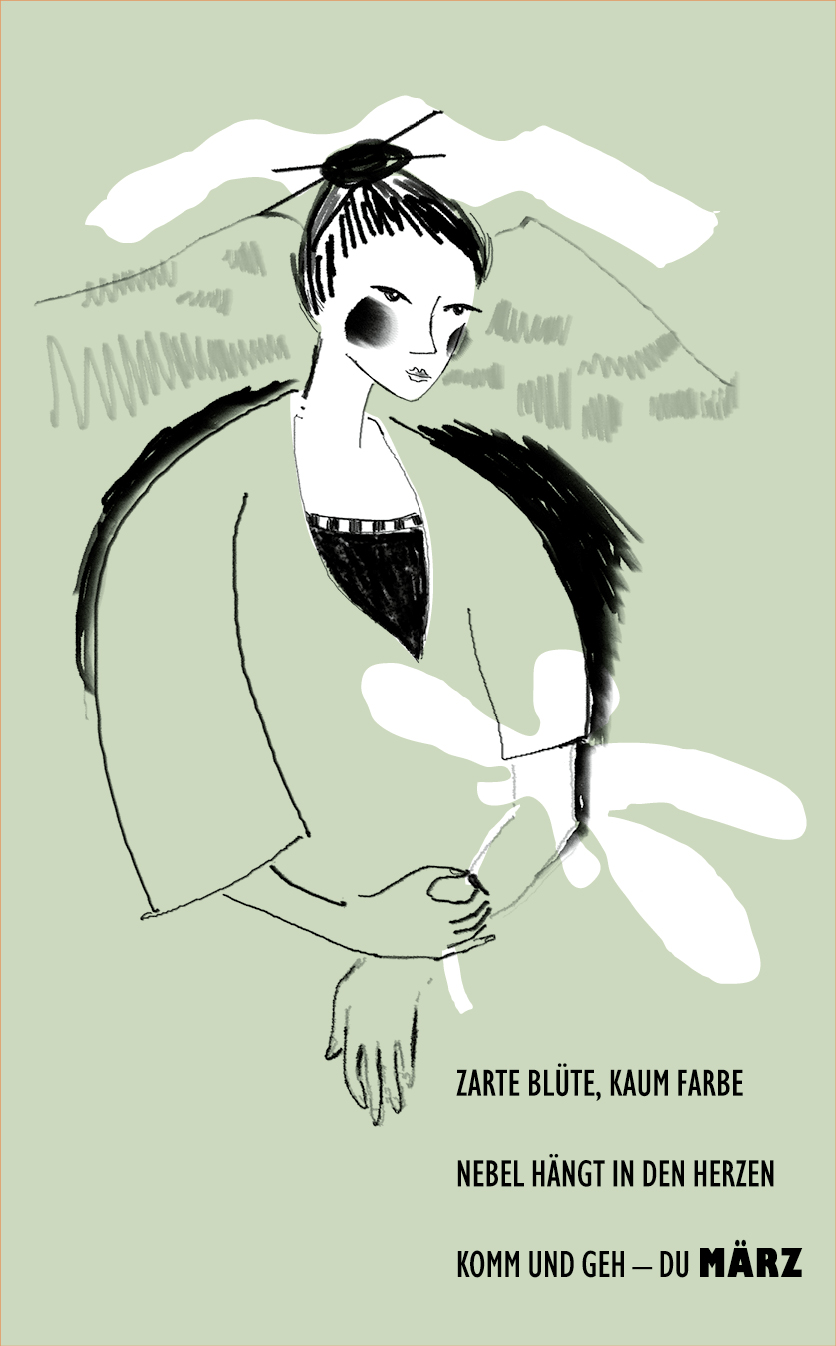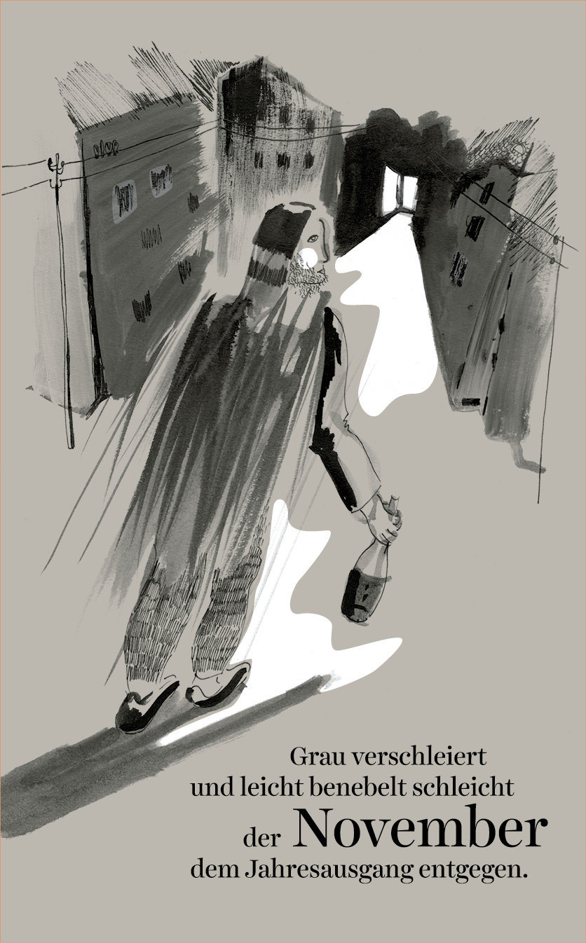 Die Zeichnungen sind konsequent in reduziertem Schwarz mit weißen Akzenten gehalten. Sie interpretieren die Texte, die spielerisch die Monate des Jahres umdichten. Oder interpretieren die Texte die Zeichnungen?